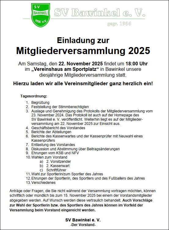 Vielen Dank und herzlich Willkommen beim SV Bawinkel e.V.